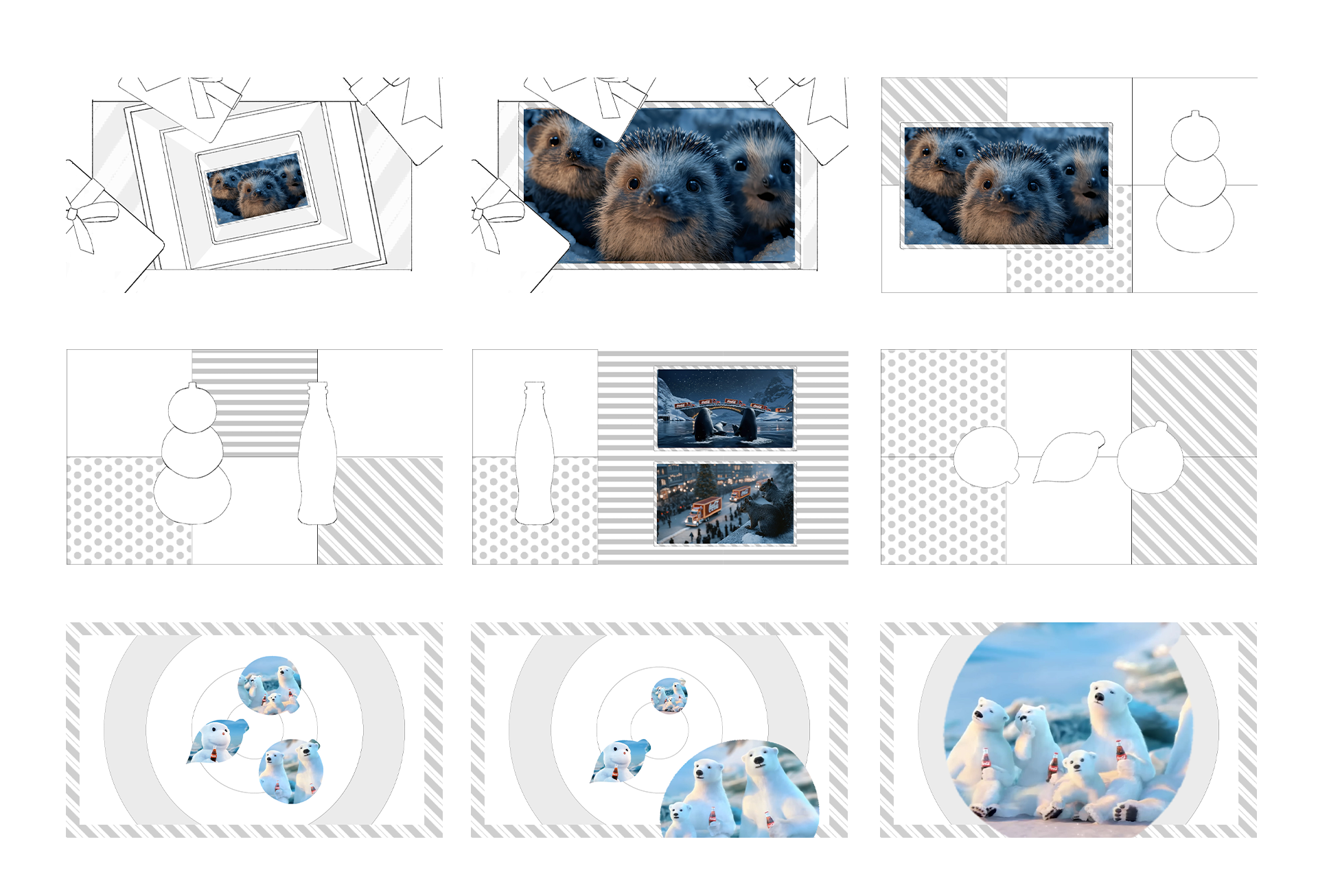 The truck equipped with an LED panel was designed to represent a gift box, with a four-sided screen and integrated 360° animations. As the vehicle was constantly moving and the audience only saw snippets of the content, the video was developed in 10- to 15-second blocks, ensuring that each person could watch at least one complete moment and create an emotional connection with Christmas. Each block explored elements of Coca-Cola's identity, current and historical brand campaigns,