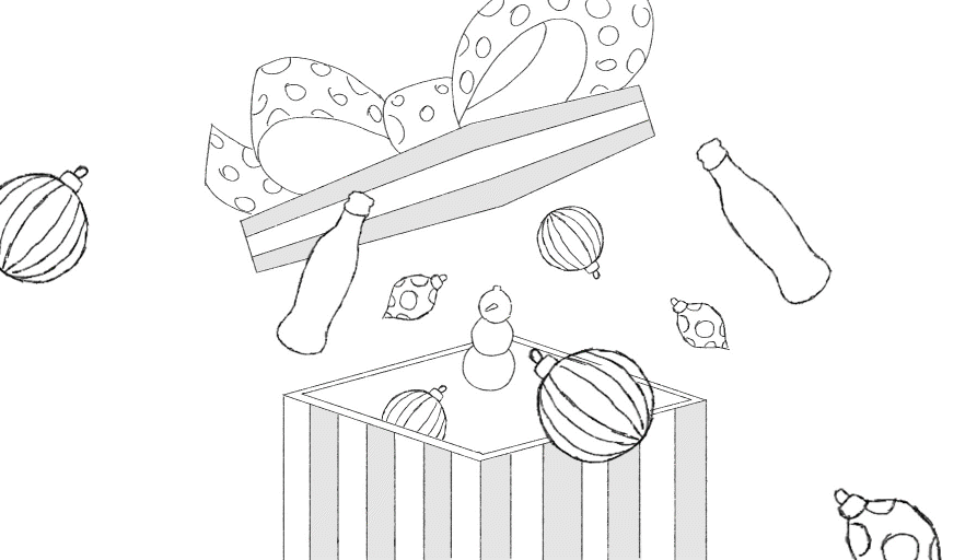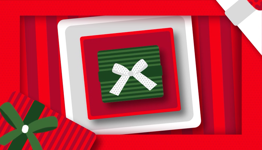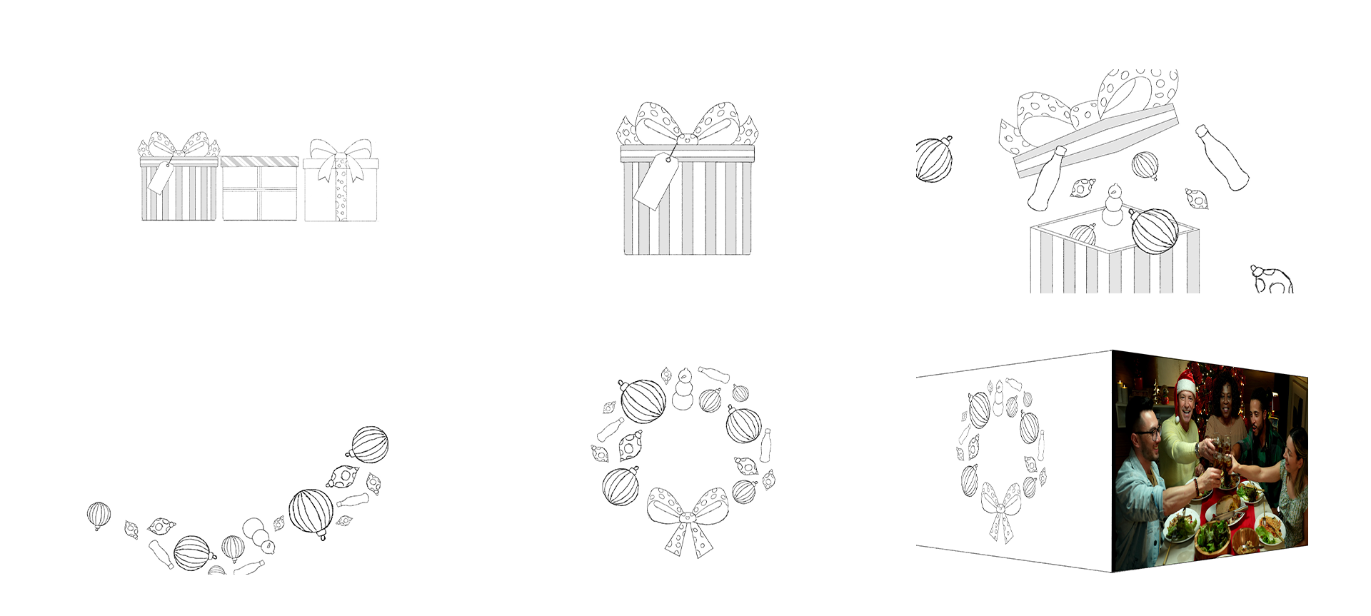 as well as Christmas symbols, always reinforcing the concept of the gift box.